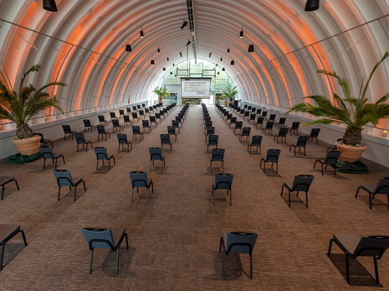Die modern-repräsentative Tagungseinheit unter dem gläsernen Kuppeldach verfügt über einen großzügigen Eingangsbereich und Parkmöglichkeiten in unmittelbarer Nähe. Damit ist das Congress Centre der ideale Ort für große Empfänge im Grünen.